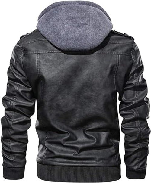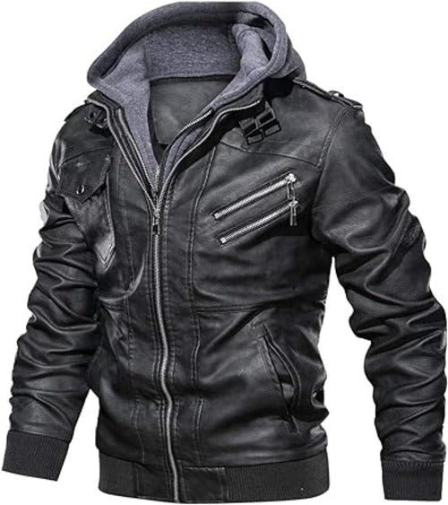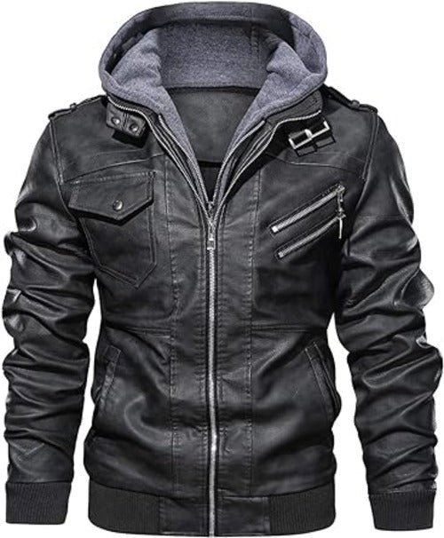 Men’s Motorcycle Bomber Jacket With a Removable Hood